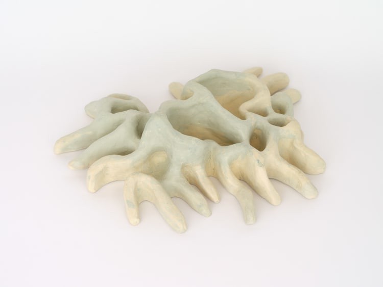 Daniel Silva works with materials such as mycelium, beeswax, rubber, charcoal, Japanese sailcloth and ceramics. He has done multiple art residencies in Japan, including a grant from Arts Council Tokyo to develop A Fragmented Garden, a participatory six month project that challenged the definition of a garden and used plant data to inform a site specific installation across various floors of a converted Nagaya house. Mildly Anxious Beasts, is a continuation of A Fragmented Garden and deals with a lot of the same themes and materials. His works seem to become more and more a theatre where nature and technology are intertwined, mixing their agencies so that they appear like organisms that can evolve between design and proliferation, composition and affective disorder. His art is therefore based on a narrative which is connecting nature and technology as a possibility to create liminal states and even a transmutation between different techniques.