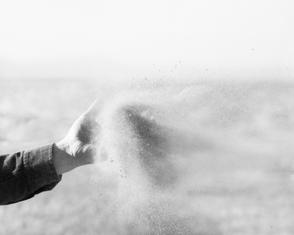 The first work in the exhibition, Westerly Wind, a suspension of a cloud of desert dust sifting through the artist’s hand, almost as if in a cinema still, is more “straightforward” work but still illusionistic and serves as a starting point for the explorations of time to follow. The latest works track time as sunlight fades from various locations. Finally, Heyliger introduces two singular transformations of the work by physically tearing prints and placing the halves side by side—their state permanently altered. The tear evades reproduction and is an action that cannot be performed the same way twice. Altering the print this way is an acknowledgement of the limitations of being human, and a way for the artist to attempt marking a fixed moment in time.