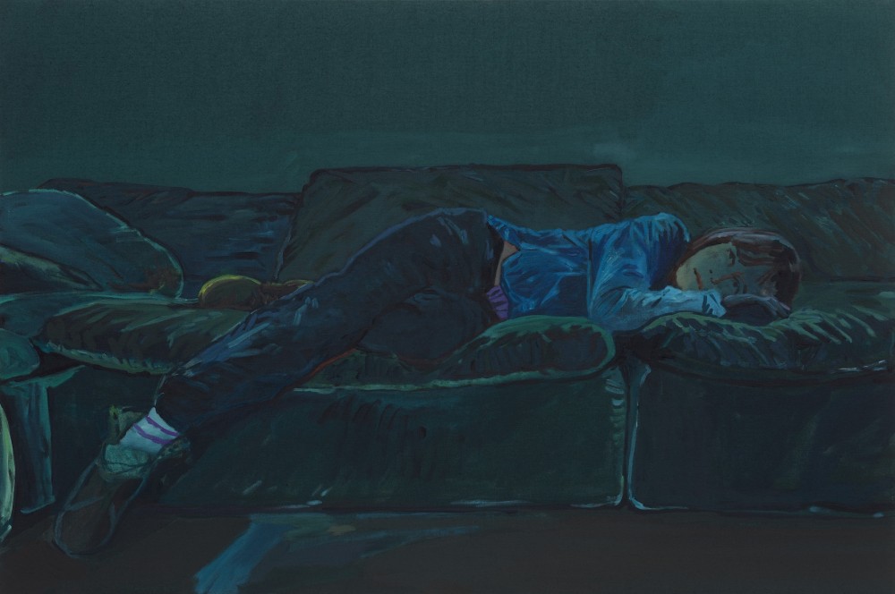 Sleep and its absence inspire Claire Tabouret’s newest body of work. The exhibition title is drawn from Mike Oldfield’s 1983 song Moonlight Shadow, in which the musician sings: “The trees that whisper in the evening / Carried away by a moonlight shadow / Sing the song of sorrow and grieving / Carried away by a moonlight shadow.” With a similar sense of repetition and theme, Tabouret also reflects on loss, nocturnal mysteries, and the progression of time.