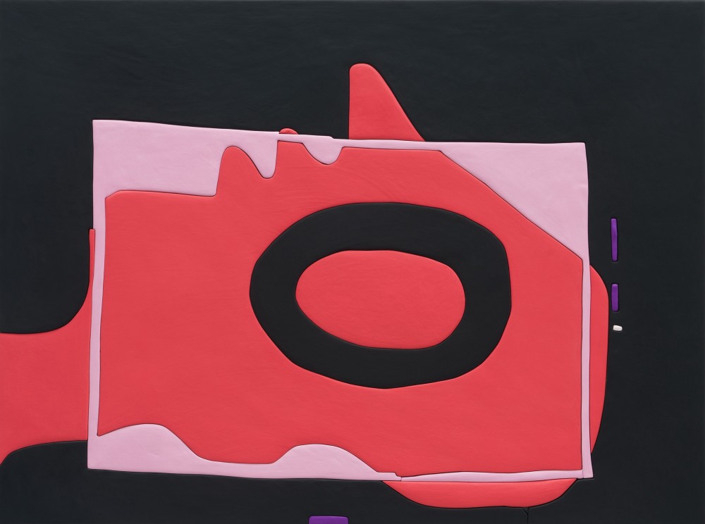 Through an experimental process which Benning has developed over the past two decades, these wall-mounted works transgress the singular categories of painting, drawing and sculpture. The manipulation of materials occurs through stages of translation: going from a digital image to a projected transparency to an outline drawn by hand on wood, to the final, three-dimensional result, which is cut out with a jigsaw, coated with aqua resin, sanded, painted, buffed and fit back together. Benning imbues each work with their touch and thought processes—an embodied, ever sentient, quality emanating from each finished painting.
