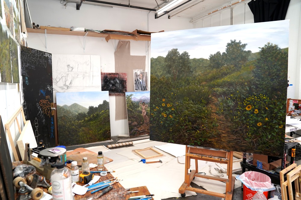 Rooted in the tradition of California plein-air painting, Lizardscapes offers a meditative counterpoint to the city’s relentless pace. Durgin-Barnes reclaims small pockets of wilderness including shrub-lined medians, sun-bleached lots, fragments of sky framed by power lines, and elevates them into luminous, contemplative compositions. These works reveal the living tension between constructed space and organic form, asking viewers to slow down and reimagine the natural world as it exists within and against the built environment.