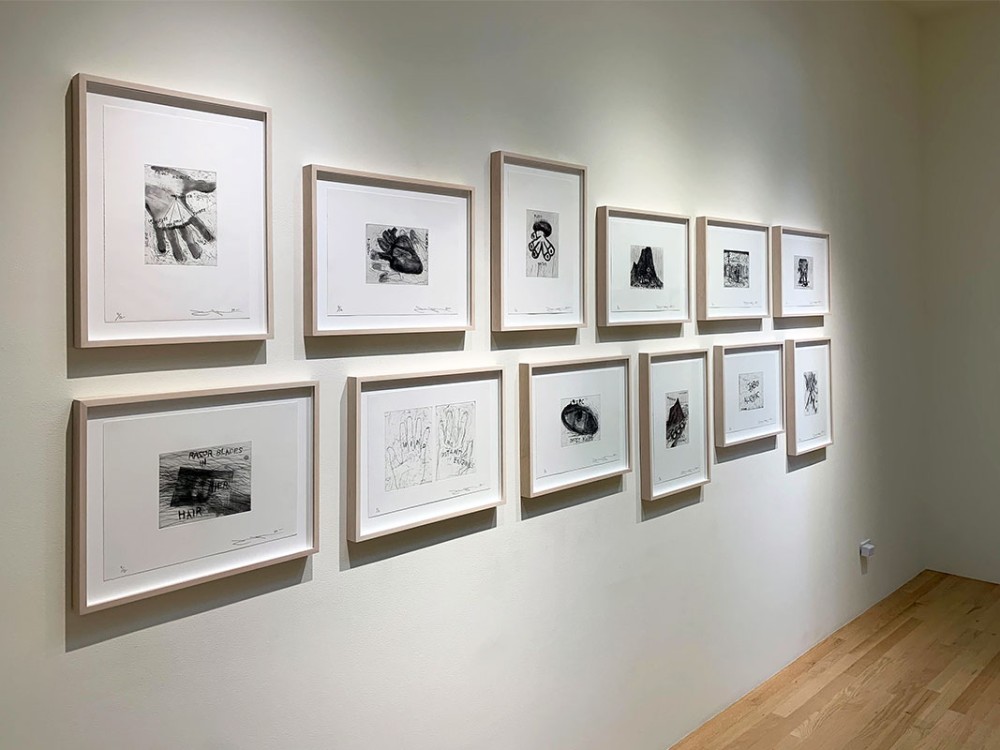 L.A. Louver is pleased to present Juarez: Now and Then, a selection of drawings and prints by Terry Allen. Begun in the 1960s and continuing to this day, Juarez is described by Allen as a “haunting” and by others as the axis mundi of his practice. In its entirety, this expansive project consists of drawings, texts, constructions, poems, sketches, prints, watercolors, songs, a screenplay, multi-room installations, musical theater performances (one co-written by David Byrne), and an album accompanied by a suite of lithographs and texts, among other manifestations. In the artist’s words, Juarez “has probably instigated and/ or informed everything I’ve ever made.” Juarez revolves around a single plot: the imagined travels and travails of two couples – Jabo and Chic, Sailor and Alice – across the American West and its southern border. A surrealist corrido, Juarez is a series of escapades involving love, lust, mystery, and intrigue. These stories find footing in our reality through their visual and sonic expressions, which correspond to and complement one another through a shared chthonic tone and Southern Gothic aesthetic. Juarez is a demonstration not only of Allen’s polymathic sensibilities, but also of his creative identity as worldbuilder and storyteller. Juarez: Now and Then is an intimate presentation of Juarez works on paper from the past and present. One suite of drawings, displayed together here in a grouping of six, dates back to 1975 and acts as an introduction to the lexicon of Juarez. Dark and atmospheric, these colored pencil frames feature annotated pictorial allusions, seemingly non-sequitur, to the scene of a crime, a critical moment in the story of the two couples. It was in this same year, 1975, that Allen released the accompanying vinyl record for Juarez, a landmark creation acclaimed as one of the greatest of concept albums of all time. The notations on the drawings echo the narrative quality of Allen’s songs, providing a visual, referential bridge between the two forms. A selection of Juarez prints, originally released by the print workshop Landfall Press in 1975, also find space in this exhibition. These prints depict variations on the same scenes presented by the six drawings, differing at points in color and marked with unique notes, song lyrics, and other clues in the margins. Framed individually, these prints provide representations of the Juarez universe even in solitary display. It was these Landfall Press prints which were reproduced in the line notes of the 2016 re-release of the Juarez album by the record label Paradise of Bachelors.