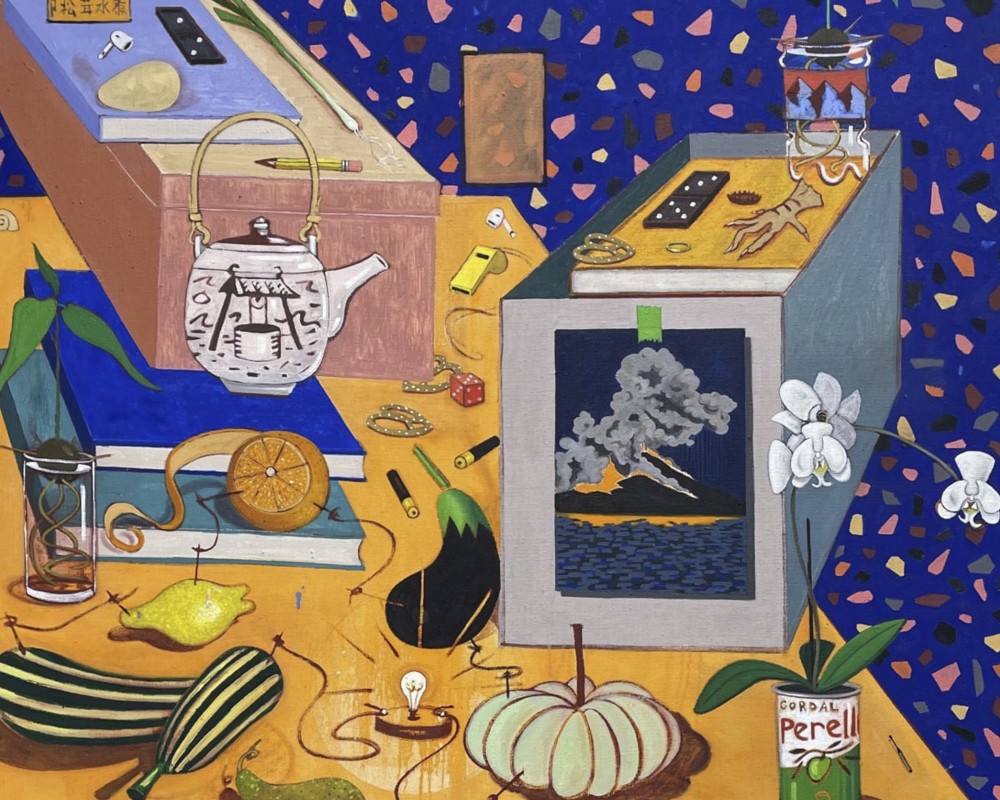 Daniel Gordon: Orange Sunrise With Flowers, Fruit, and Vessels